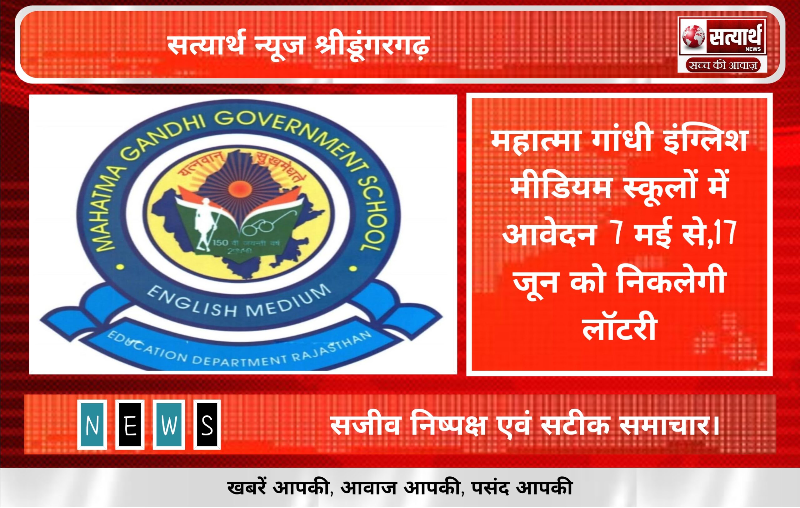 सत्यार्थ न्यूज श्रीडूंगरगढ़-सवांददाता ब्युरो चीफ राजस्थान के महात्मा गांधी अंग्रेजी माध्यम स्कूलों में सत्र 2025-26 के लिए एडमिशन प्रक्रिया 7…