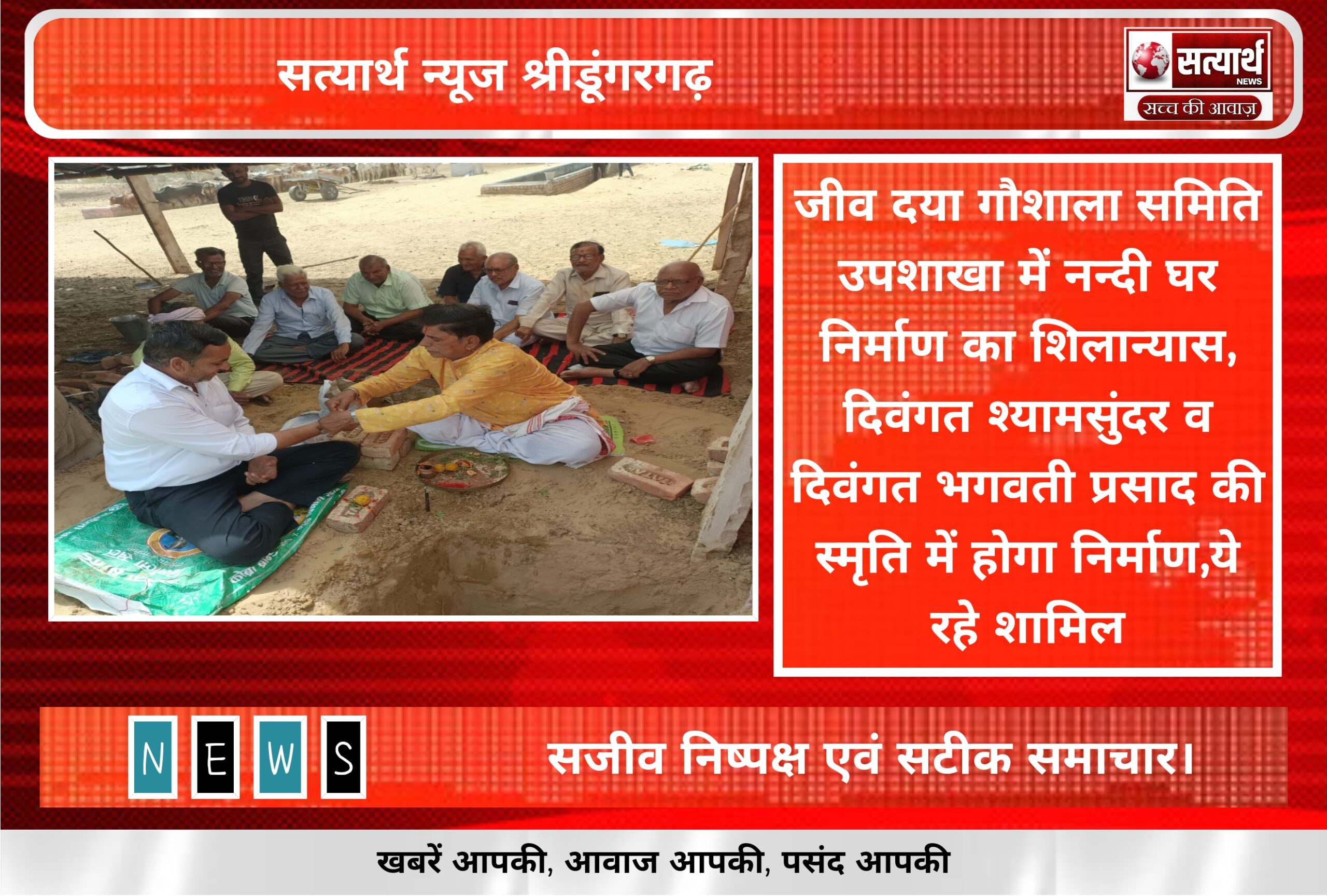 सत्यार्थ न्यूज श्रीडूंगरगढ़-सवांददाता ब्युरो चीफ जीव दया गौशाला समिति, कालू रोड स्थित उपशाला उप शाखा में गौ माता नदी घर…