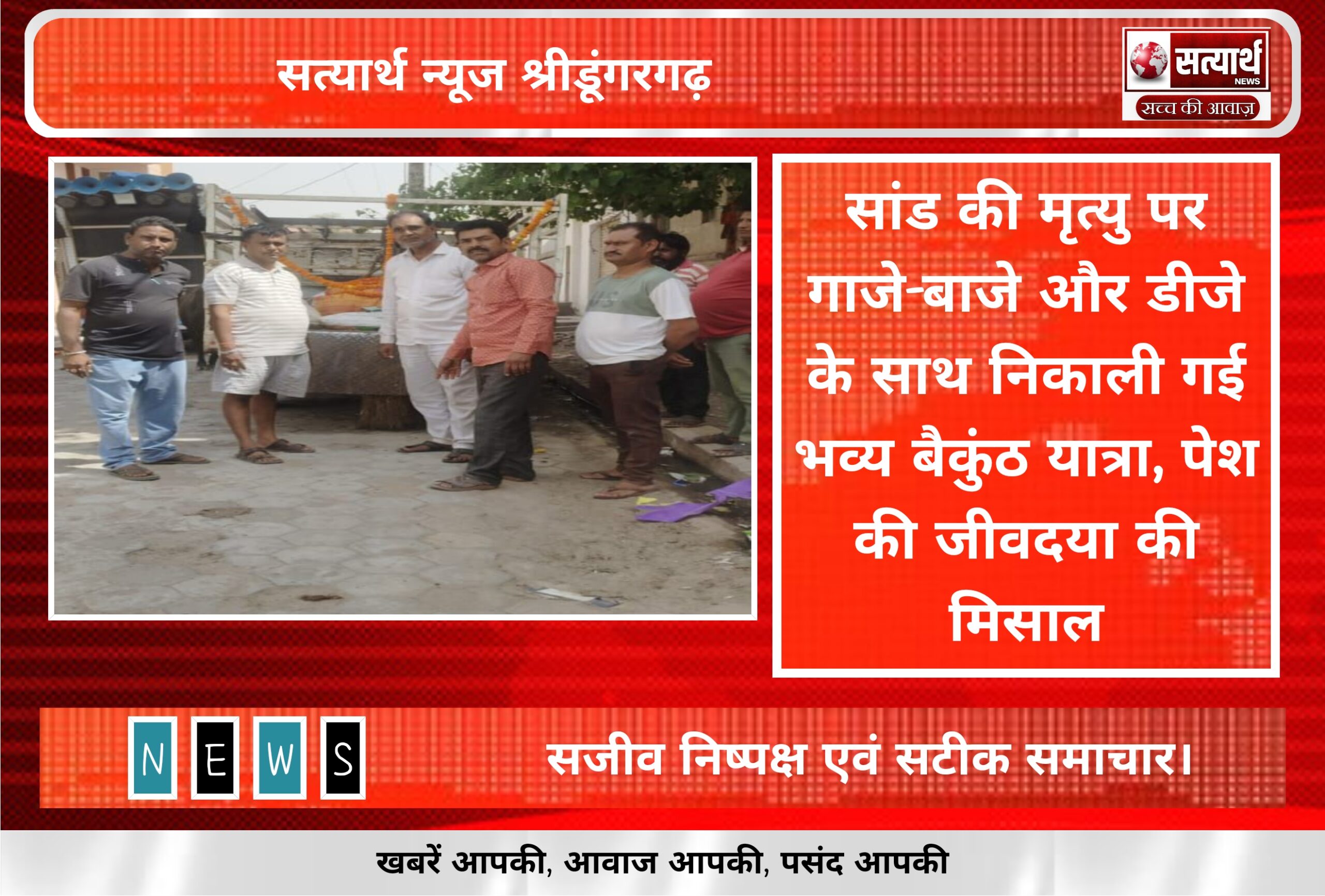सत्यार्थ न्यूज श्रीडूंगरगढ़-सवांददाता ब्युरो चीफ कस्बें के रानी बाजार में गुरुवार रात एक सांड की आकस्मिक मृत्यु हो गई। जिसके…