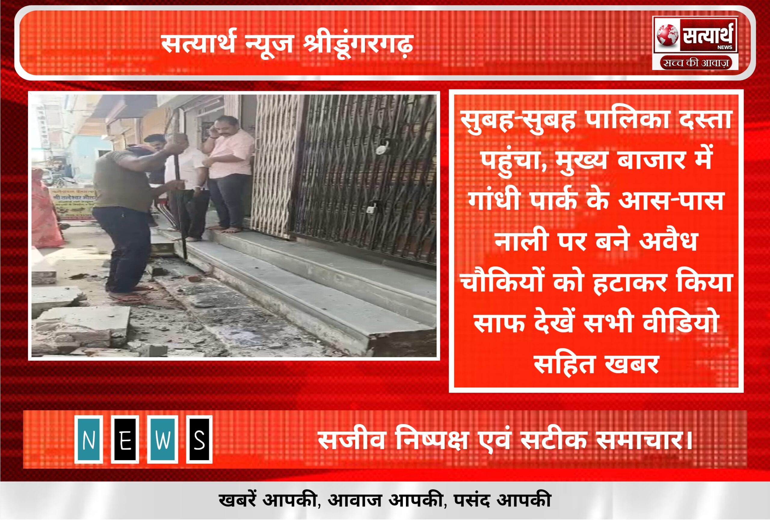 सत्यार्थ न्यूज श्रीडूंगरगढ़-सवांददाता ब्युरो चीफ कस्बें के मुख्य बाजार गांधी पार्क के सामने स्थित दुकानदारों द्वारा गंदे पानी की नाली…