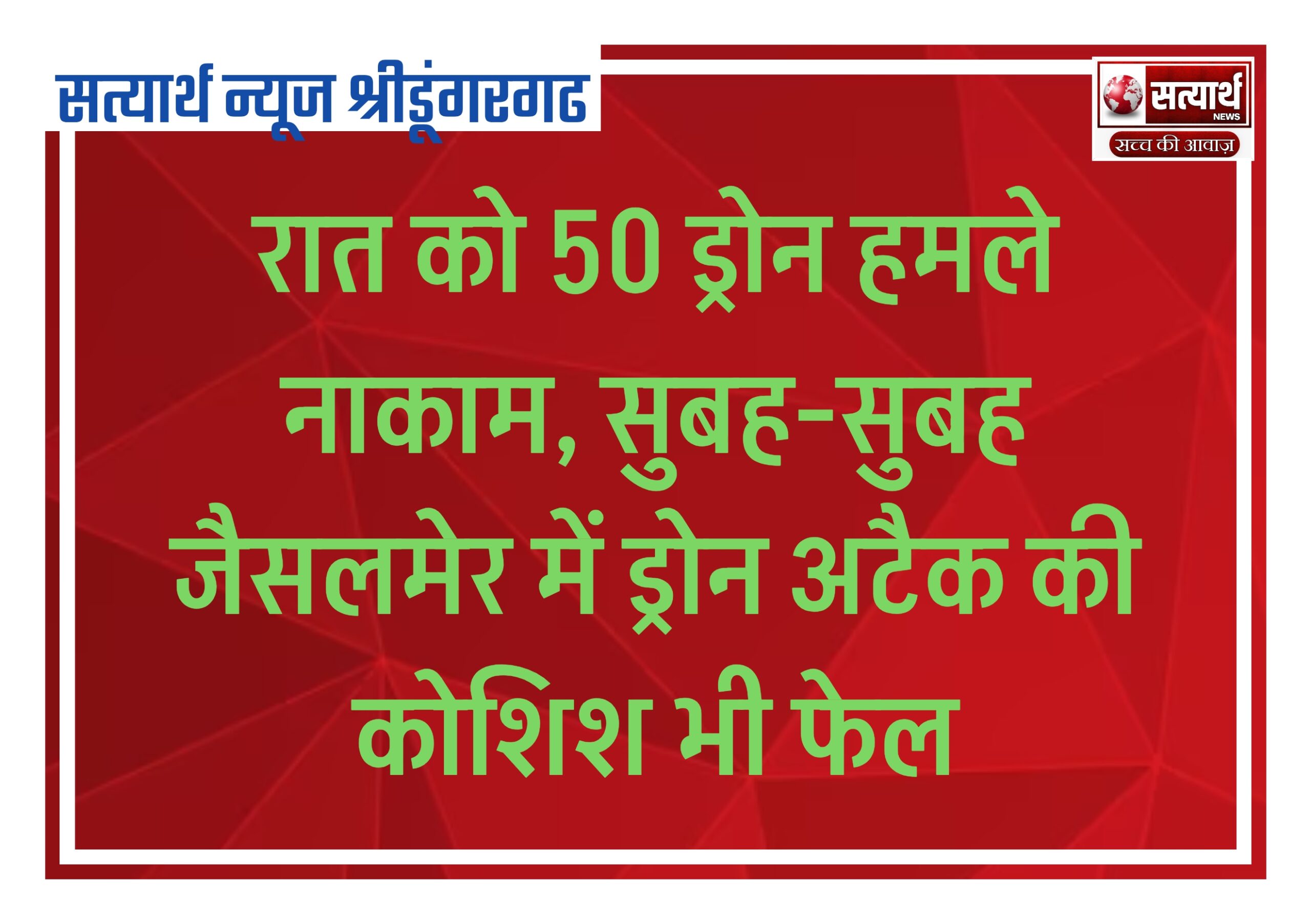 सत्यार्थ न्यूज श्रीडूंगरगढ़ -सवांददाता नरसीराम शर्मा सुबह देश राज्यों से बड़ी खबरें *=============================* *मिट्टी में मिला पाक का सपना, भारत…