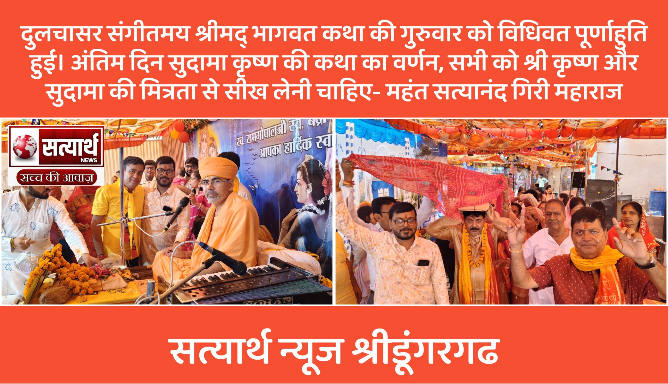 सत्यार्थ न्यूज श्रीडूंगरगढ़ -सवांददाता ब्युरो चीफ दुलचासर गांव के मूंधडा भवन में चल रही सात दिवसीय संगीतमय श्रीमद् भागवत कथा…