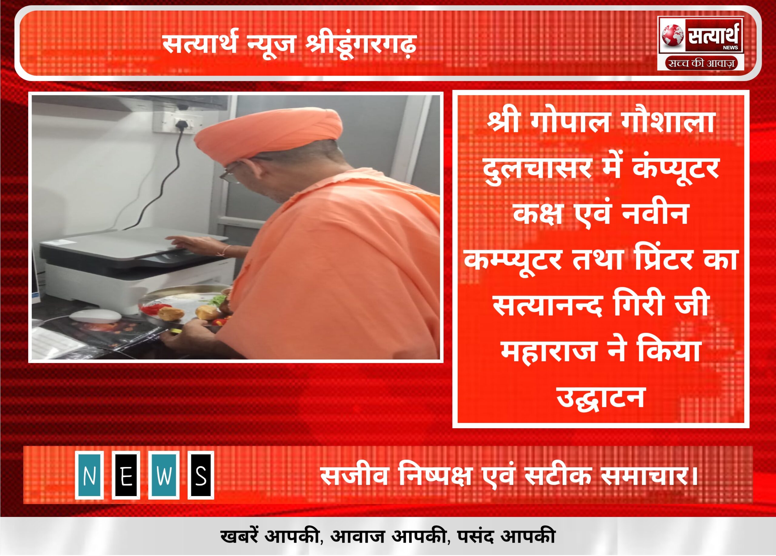सत्यार्थ न्यूज श्रीडूंगरगढ-सवांददाता ब्युरो चीफ श्री गोपाल गौशाला दुलचासर में बुधवार को शाम 6 :15 बजे कंप्यूटर कक्ष एवं नवीन…