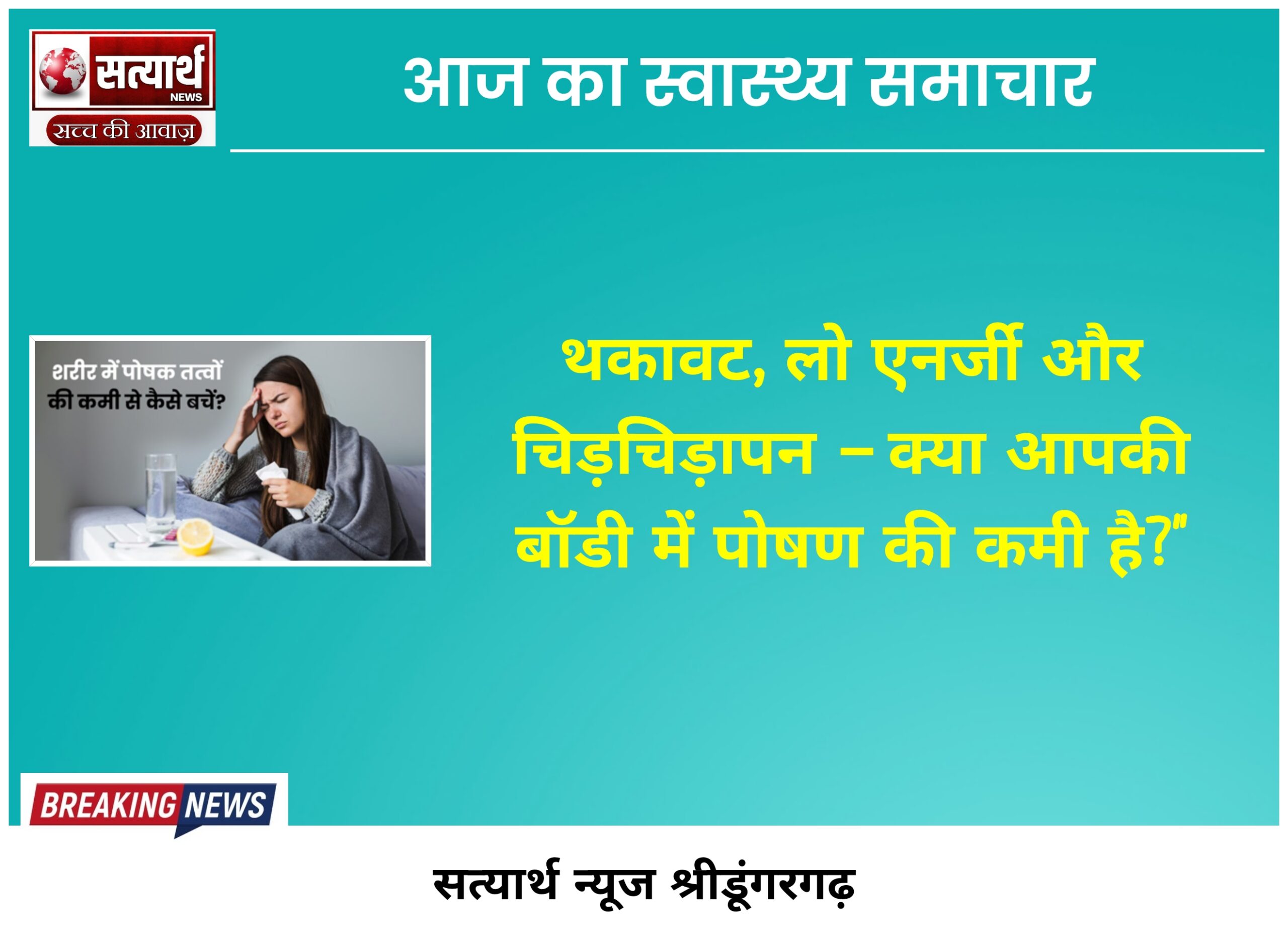 सत्यार्थ न्यूज श्रीडूंगरगढ़-सवांददाता मीडिया प्रभारी आज के समय में बहुत से लोग दिनभर थके-थके रहते हैं। छोटी-छोटी बातों पर चिड़चिड़े…