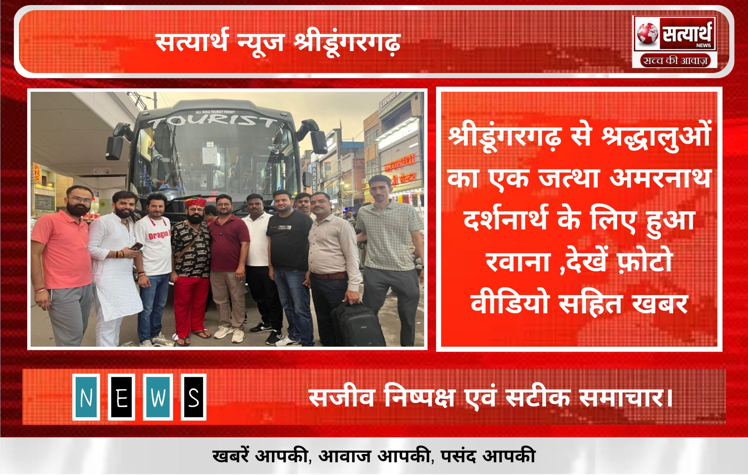 सत्यार्थ न्यूज श्रीडूंगरगढ-सवांददाता ब्यूरो चीफ कस्बे से सोमवार शाम को बाबा अमरनाथ के पावन दर्शन के लिए बाबा भोलेनाथ के…