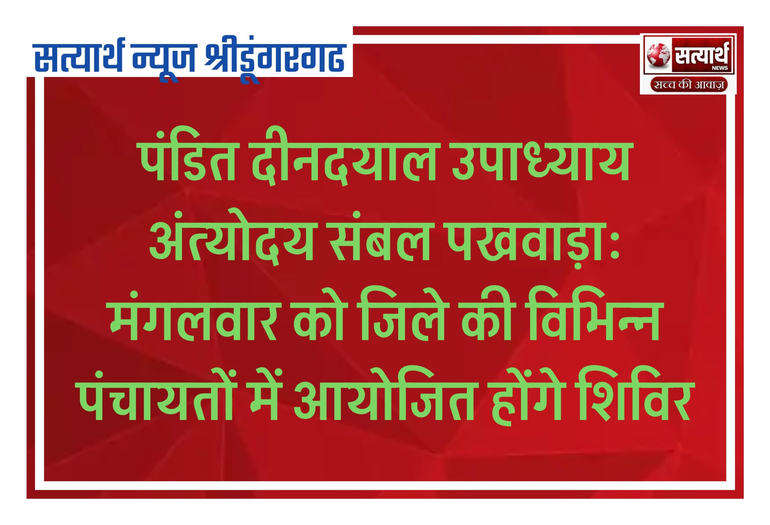 सत्यार्थ न्यूज श्रीडूंगरगढ- सवांददाता ब्यूरो चीफ पंडित दीनदयाल उपाध्याय अंत्योदय संबल पखवाड़ा के तहत मंगलवार को जिले की कई ग्राम…