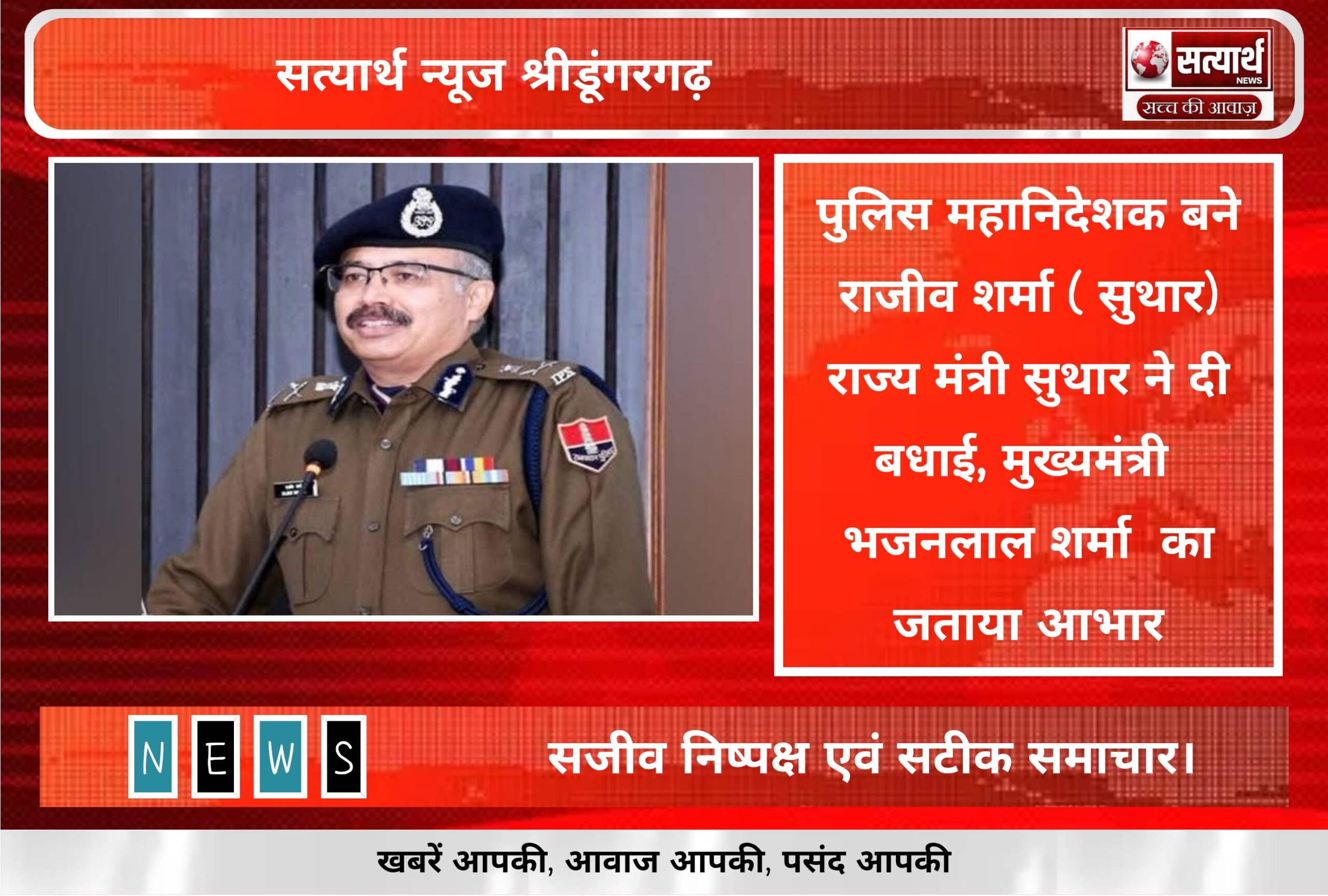 सत्यार्थ न्यूज श्रीडूंगरगढ़-सवांददाता ब्यूरो चीफ राजस्थान के नए (डीजीपी) पुलिस महानिदेशक राजस्थान राजीव शर्मा सुथार बने है। विश्वकर्मा कौशल बोर्ड…