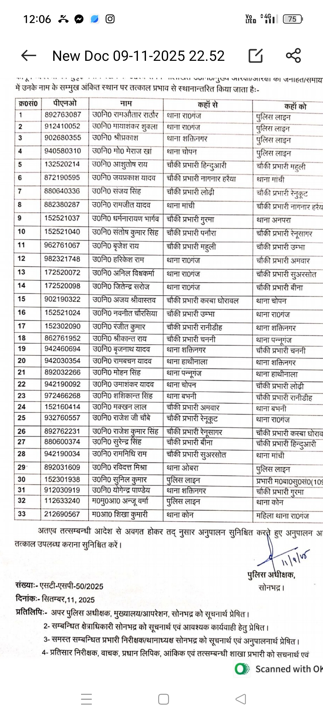 *पुलिस अधीक्षक द्वारा 33 उप निरीक्षक मुख्य आरक्षी, आरक्षी के कार्य क्षेत्र में किया गया बदलाव* सोनभद्र/सत्यनारायण मौर्य/संतेश्वर सिंह Mo…